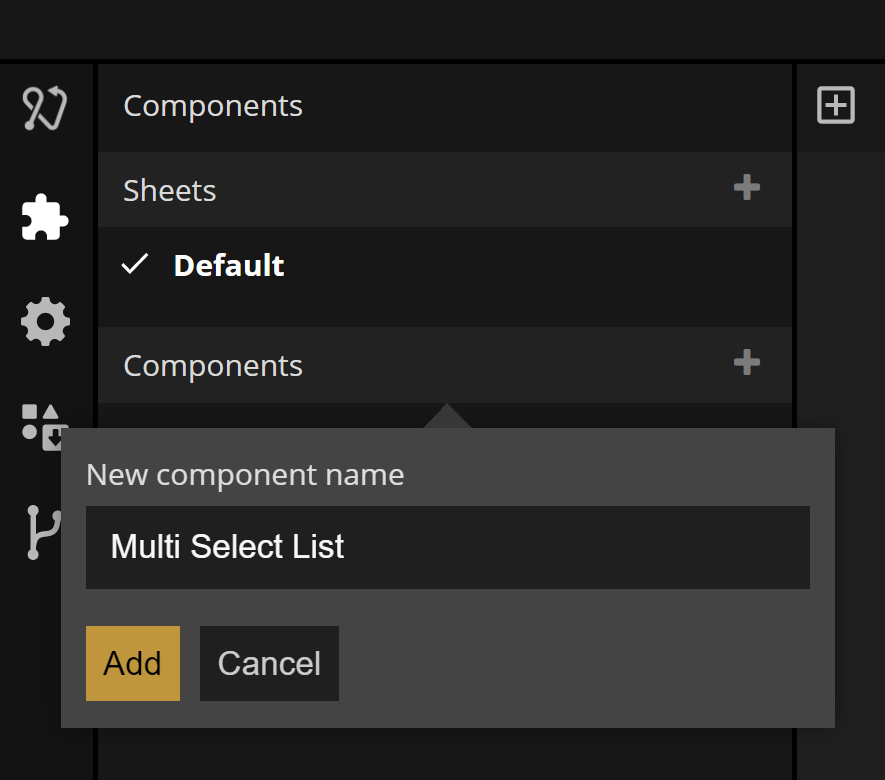 "Multi Select List"という名前の新しいビジュアルコンポーネントを作成