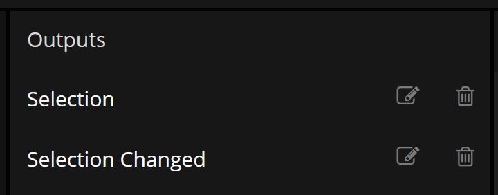 Component Outputsでは、SelectionとSelection Changedのポートを作成します。