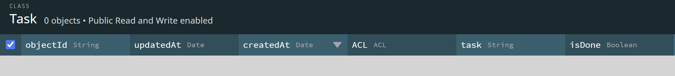 新しいTaskクラスをダッシュボードで調べると、他にいくつかのカラムが含まれていることがわかります。これらは自動的に作成され、一般的には削除しないでください。実際にはかなり便利です。デフォルトのカラムは