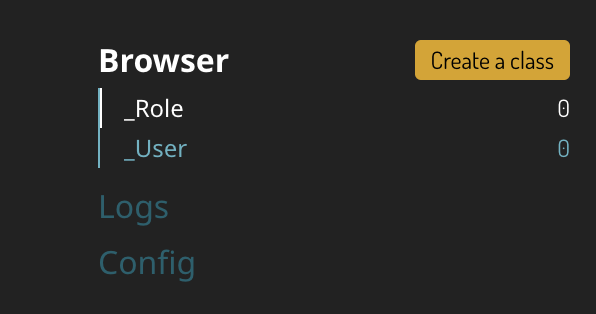 左側のメニューの黄色いボタンCreate a Classをクリックするか、Editメニューを開いてAdd a Classを選択することで、データベースに新しいクラスを追加できます。