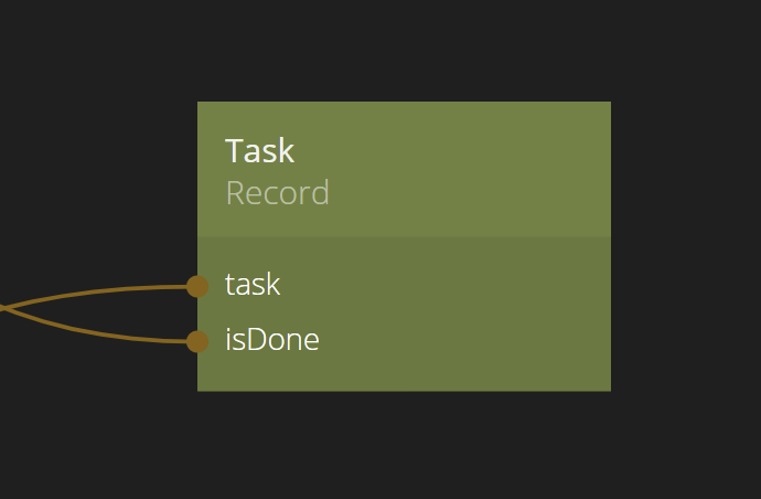 Noodlの各クラスには、クラスの各レコードが持つことができるデータの種類を定義する多くのカラムがあります。例えば、タスク管理アプリを構築している場合、TaskというクラスにtaskとisDoneという2つのカラムがあり、タスクの説明とタスクが完了したかどうかを保持することができます。Noodlでは、カラムはRecordノードのプロパティとして表され、入力または出力として使用できます。