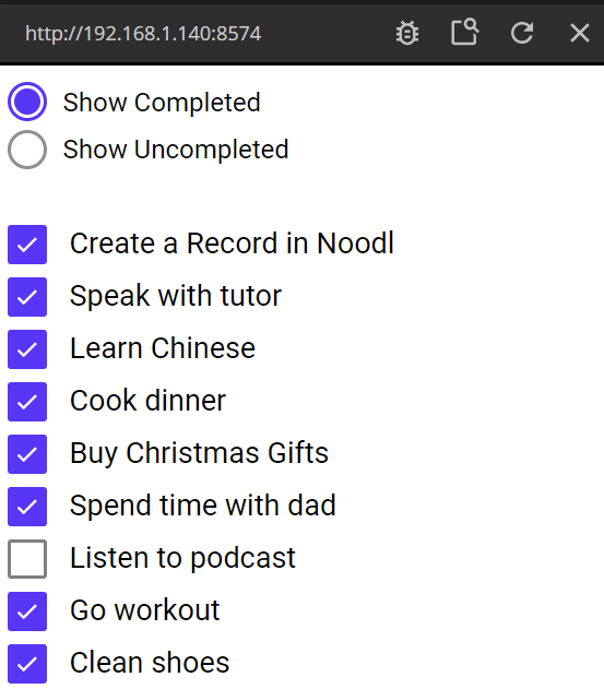 あなたのアプリのリストが未完了のタスクのみを表示するように変更されているのがすでに見えるはずです(あなたがそれを持っている場合)。タスクをチェックすると、それらが1つずつ消えていくのが見えるはずです。それらを戻したい場合は、ダッシュボードに行ってisDone値を再びfalseに変更し、アプリをリフレッシュする必要があります。