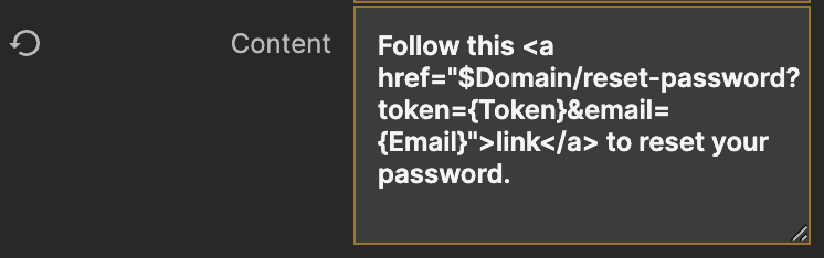 見ての通り、HTMLリンクを含むメールが作成されます。このリンクはいくつかの洗練されたテンプレート構文を使用します。