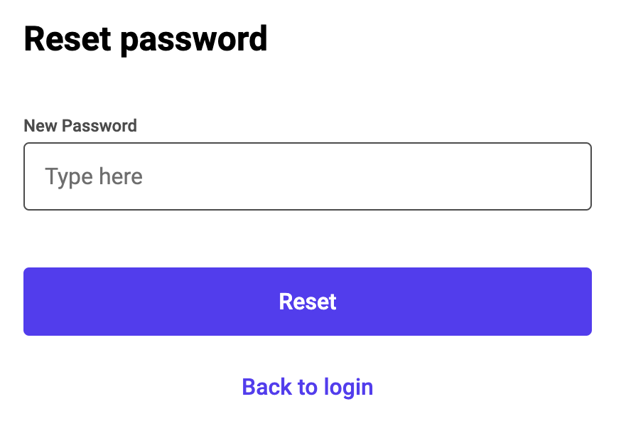 このリンクは、ユーザーを/reset-passwordページに送り、ここにはユーザーが新しいパスワードを提供できるText Inputを含めることができます。