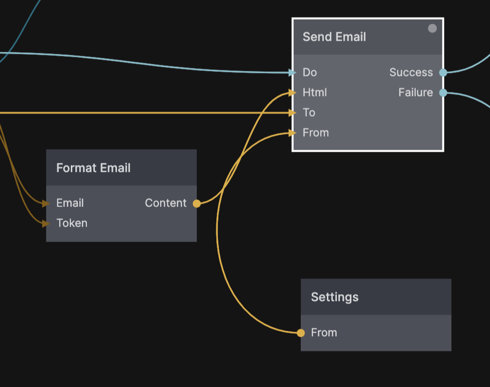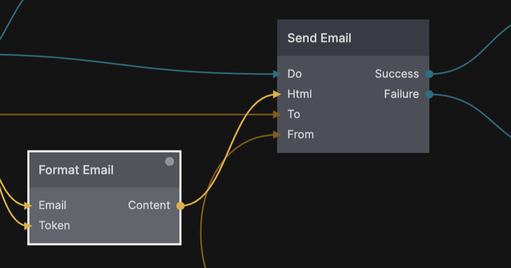 次の部分は、実際にユーザーにメールを送信することです。これは、Format EmailおよびSend Emailアクションコンポーネントを使用して機能内で行われます。