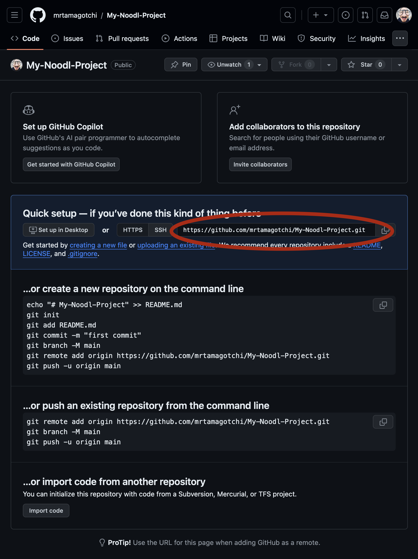 Noodlはプッシュ時に新しく作成されたリポジトリをクリアします。しかし、安全のため、README.mdや.gitignoreファイルなしでリポジトリを作成することを確認してください。