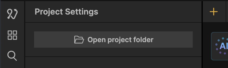 プロジェクト設定パネルを開き、「プロジェクトフォルダを開く」ボタンをクリックします。