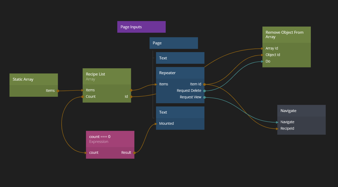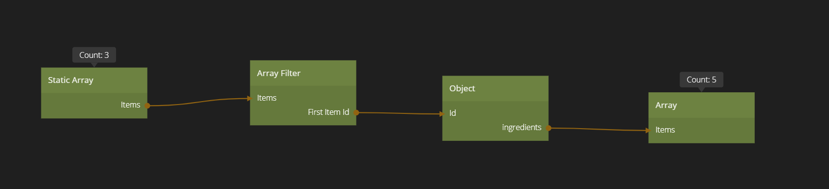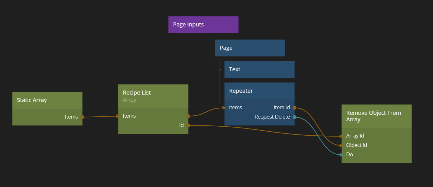 したがって、配列ノードのIDを別のノード、例えば配列からオブジェクトを削除に接続して、同じ配列を操作していることを確認するのが一般的です。IDが静的である場合は、ノードに直接IDを入力することもできます。