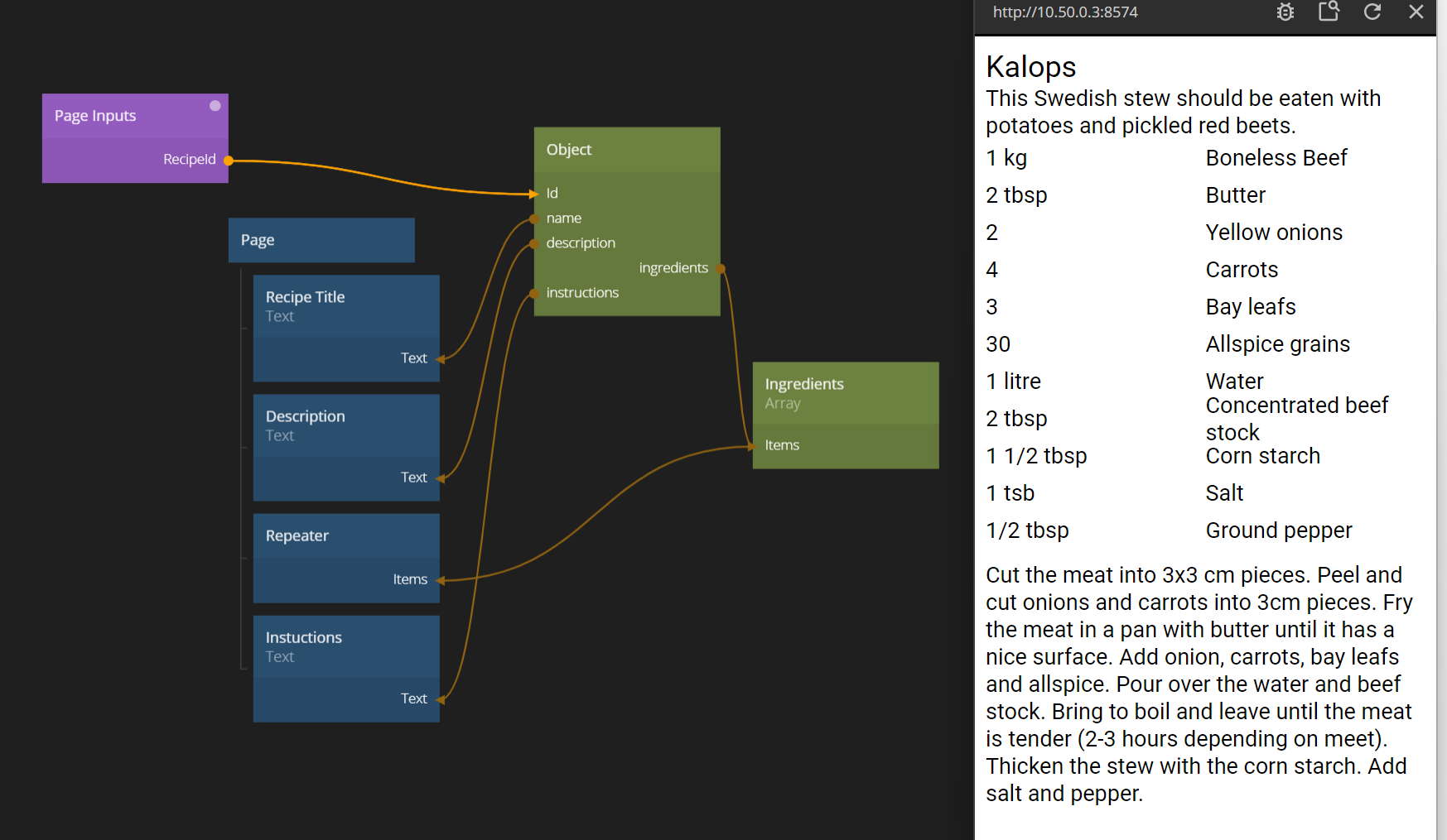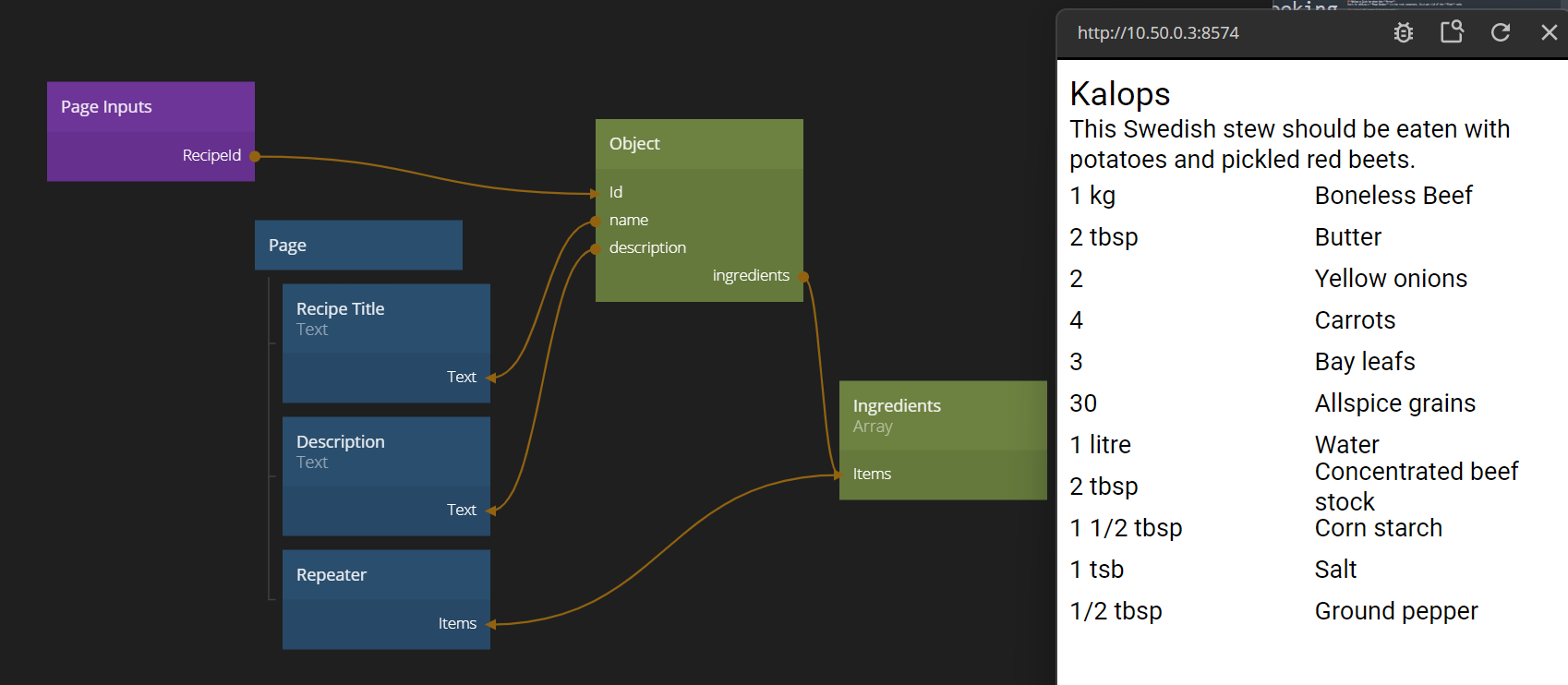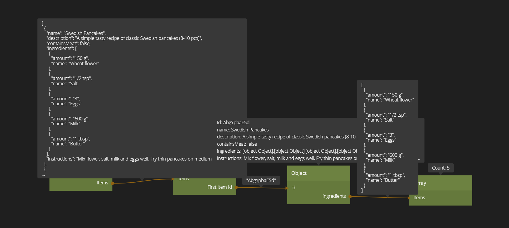 配列ノードのアイテム入力にアイテムを簡単に割り当てることができます。これは、たとえばレコードをクエリを通じてデータベースからクエリを行うときや、配列フィルタや静的配列の結果を処理するときなどによく行われます。以下に3つの例を示します。