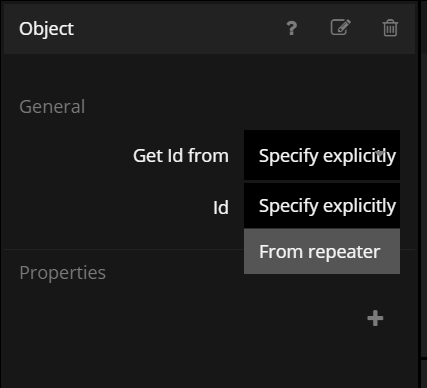 2番目のケースでは、配列ノードに直接IDが設定され、そのIDが配列をクリアノードを正しい配列に指すために使用されます。IDはプロパティパネルで設定されます。