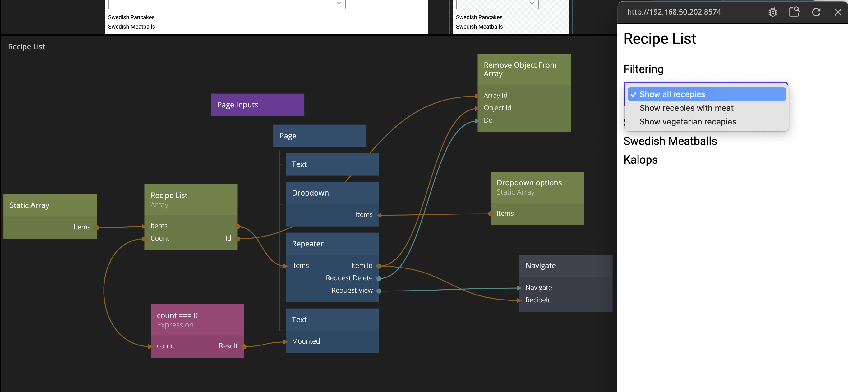 最初のケースでは、配列ノードのIDが文字列ノード(または例えば変数)に格納され、それが異なるノードで配列を参照するために使用されます。