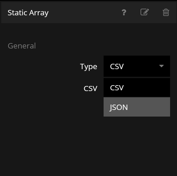 静的作成 - ノードグラフに配列ノードを単純に追加します。配列にIDを与えることができます(上記で議論されたように)または単に空白にしておくことができます。これは、配列に自動的にIDが割り当てられることを意味します。