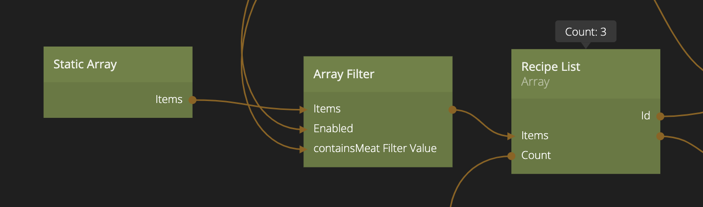 配列ノードをノードキャンバス上でホバーすると、配列が現在持っているアイテムの数が表示されます。