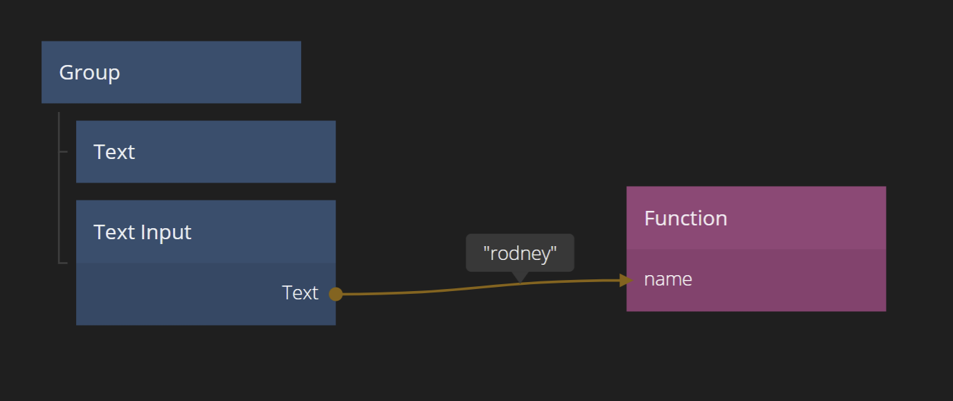 Connect the Text output from the TextInput node to the name input on the newly created Function node.
