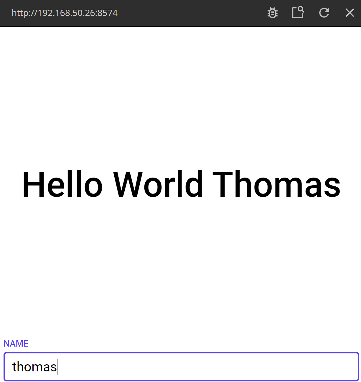 Now test your app. Start writing a name in the Text Input, press Enter and you should see the "Hello World"-text changing.