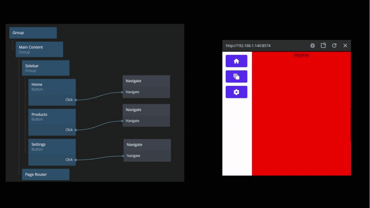 In this guide you will be introduced to the Page Router, the Page and the Navigate node to create a simple UI where you can navigate between pages. You will learn how to navigate both by interacting with the UI or by entering URLs directly in the browser.