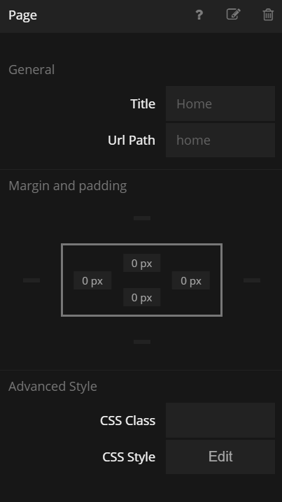 Now, lets look at the paths to the pages. Go back to one of the Page components and click the Page node. You will se that it has a Title and a path that's based on the name of the component.