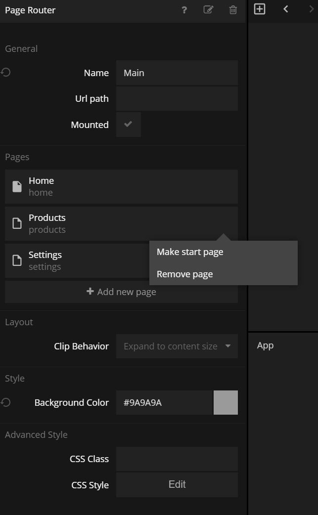 For now - lets only change one thing: The background color to more clearly see the area on the screen that the page router takes up. Change it to a nice grey color.