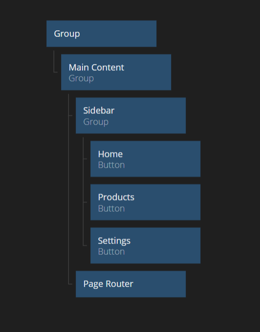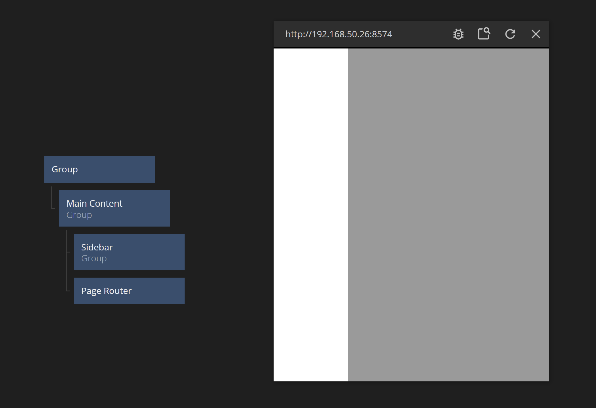 The sidebar is 100 px wide and white. It's placed together with the Page Router in a Group node with a horizontal layout.