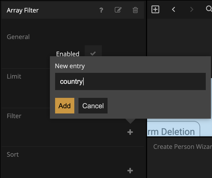 When the user clicks "Cancel" we want to close the Popup but we have to do Close Popup in the component that was opened directly using a Show Popup (i.e. the Add New Person Popup). How do we notify that component that the user clicked "Cancel"? Again, since the component that's on top of the Component Stack can be seen as a child to the stack, we can Send an Event to the parent component (for a dedicated guide on Events, see here).