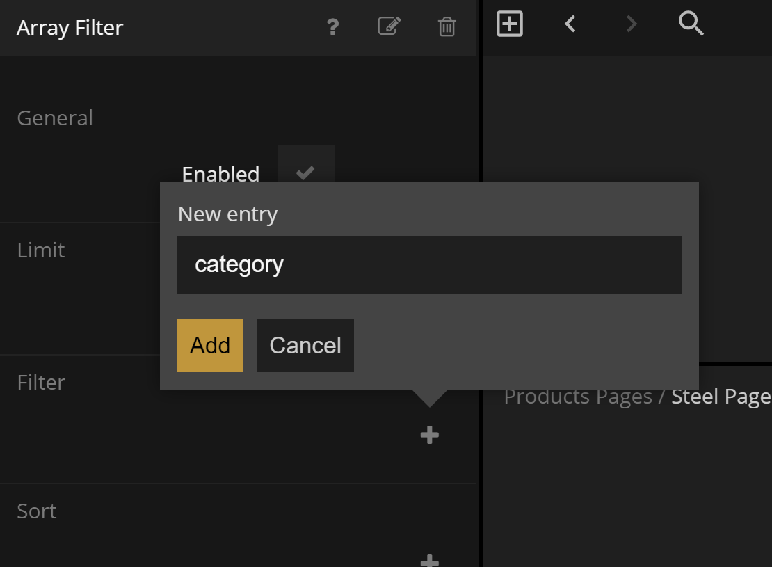 Secondly, to filter out the products of the "steel" category, we go back to the "Steel Products" Page Component.