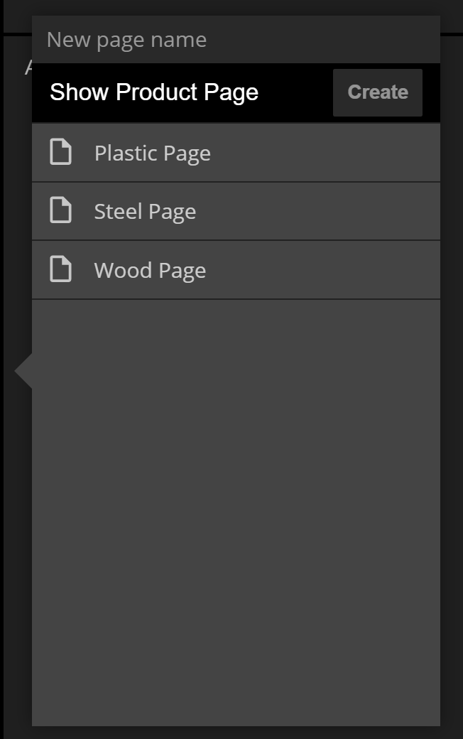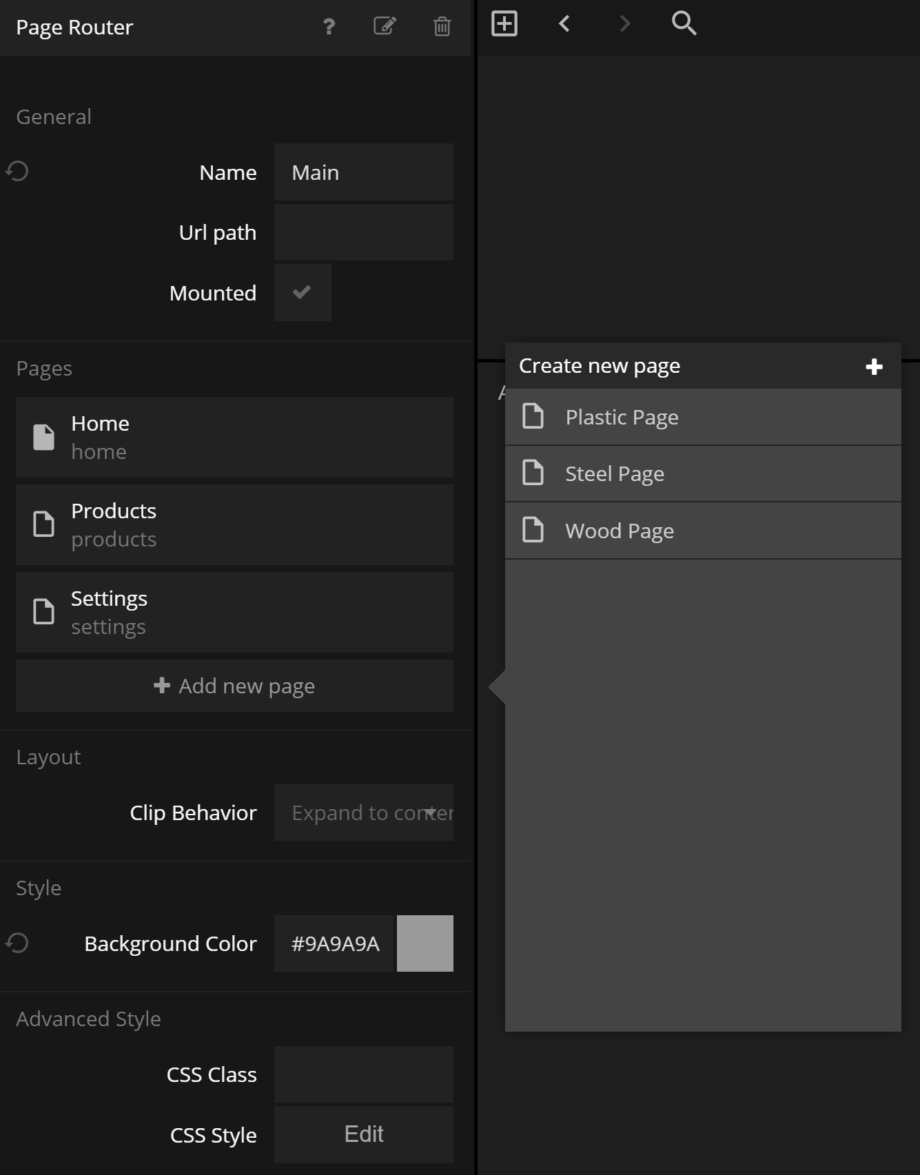 Next step is to add a new Page Component to the main Page Router. We want to have it mapped to the URL /showproduct. Click the main Page Router (in the App component), the click Add New Page and Create New Page.