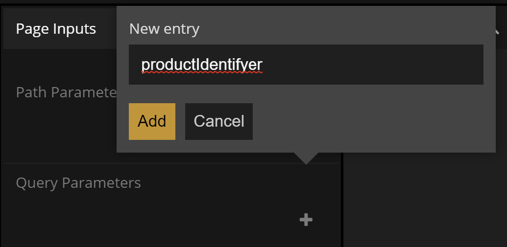 As soon as you select it, you will see that there is a new input called "productIdentifyer". This is the one we added on the Page Inputs earlier!