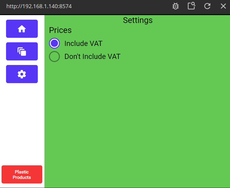 Now lets make use of the parameter. We start by going to the "Settings" page component. We will let the user state its preference here, whether they want to include VAT or not in the displayed price.