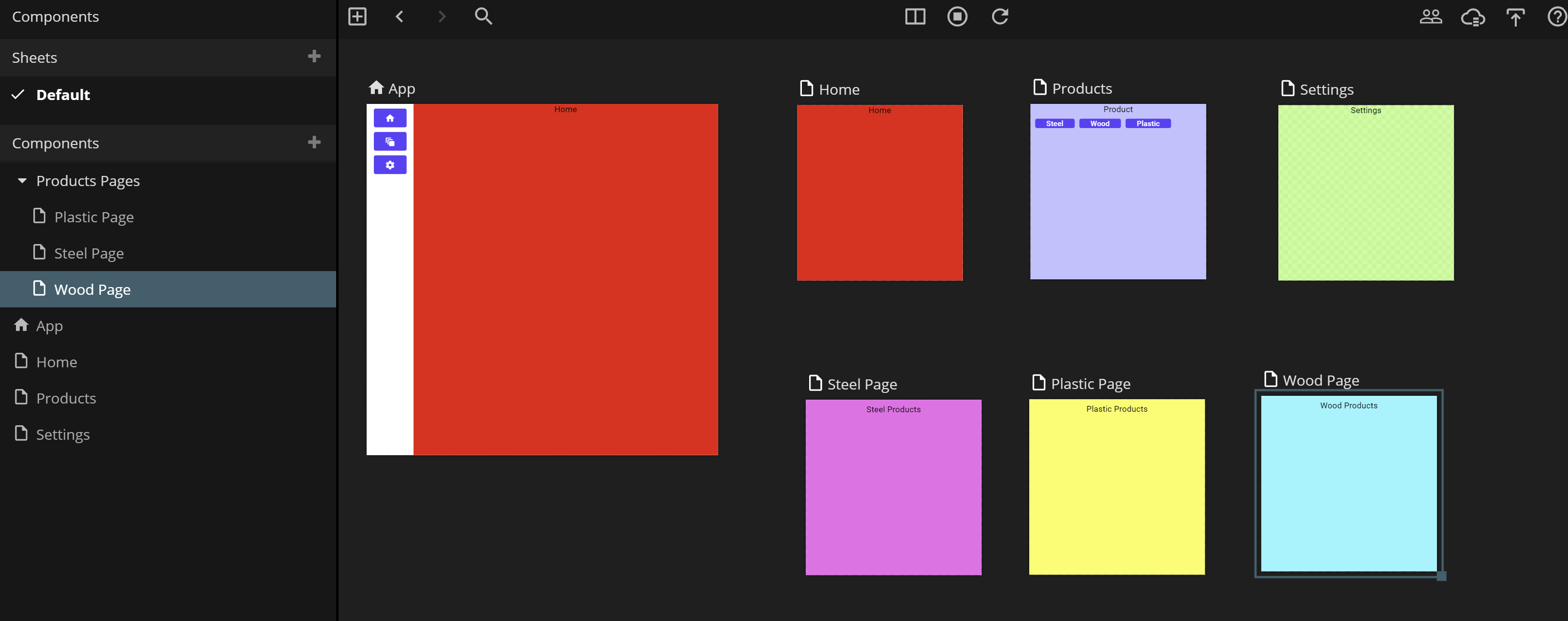 After creating the pages, changing their color and title, you should now have something that looks like this.