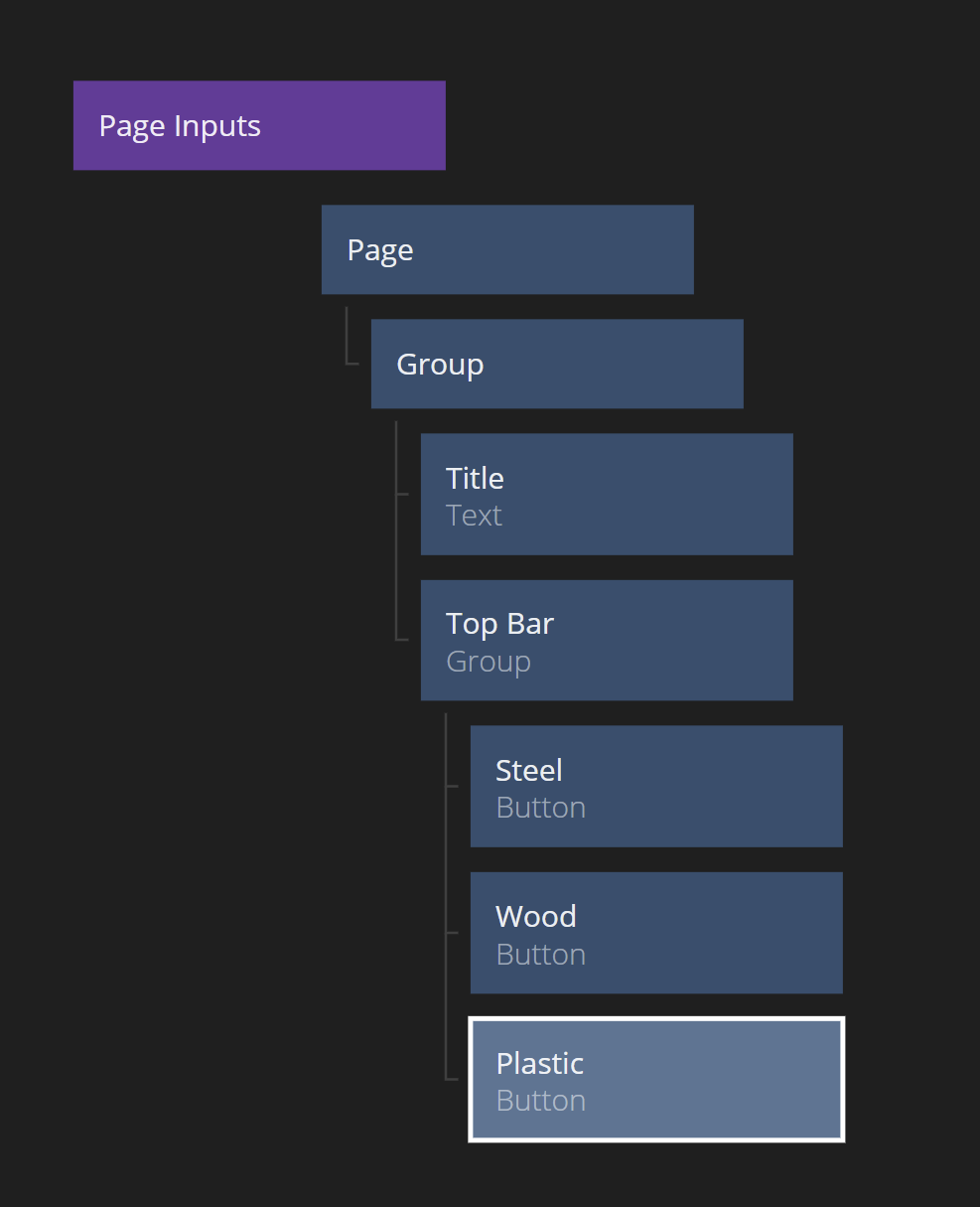 How you acheive this in Noodl is to add a Page Router in the Products Page, and create three new pages for the sub pages. We add the Top Bar directly in the Products Page, so it will be consistent between the three subpages.