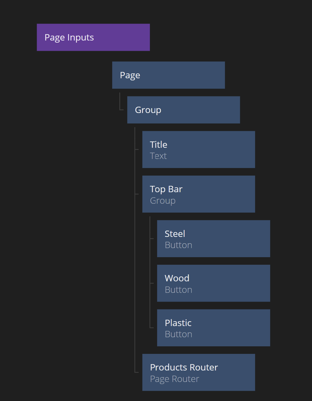 Now let's add a Page Router under the Top Bar. It will take up the rest of the space of the Page. We change the name of the Node and the name of the Page Router (the Name Property) to "Products Router".