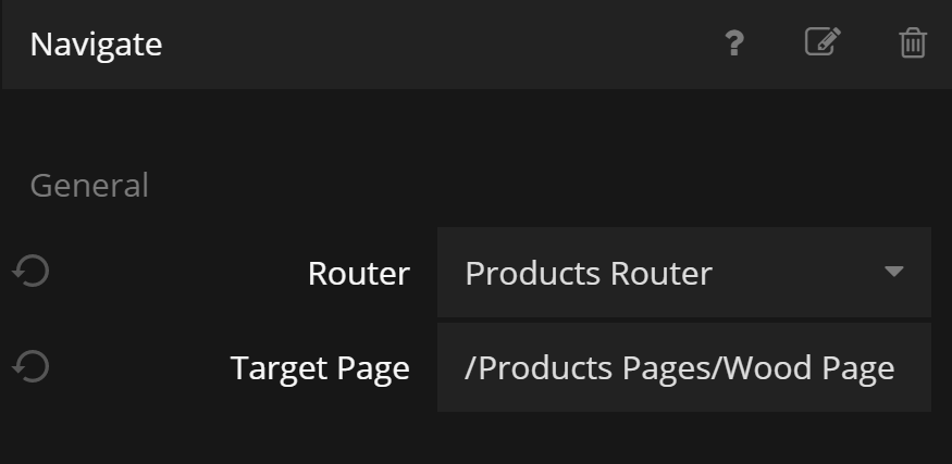 Doing this using the individual Page Routers would be a bit messy, so instead we use the Navigate To Path node. It will give the App a path to navigate to and let Noodl resolve which navigations that need to happen on which Page Routers based on the path.