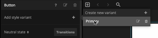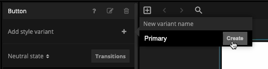 At the top of our restyled buttons Property Panel, click the “plus”, “Create new variant”, give it a name and confirm.