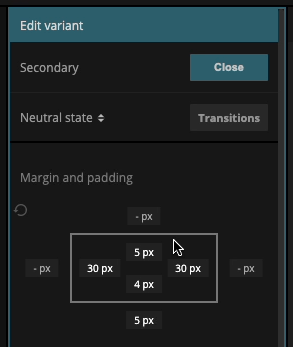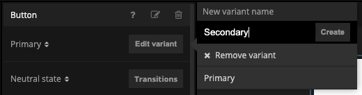 This time we will not override any styles though. Instead we’ll immediately create a new variant and name it “Secondary”.