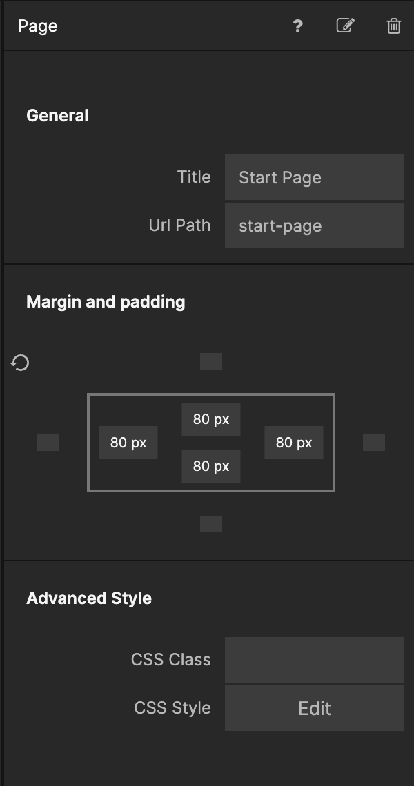Select the Start Page component and remove the text node. Then on the Page node, add 80px padding all around.