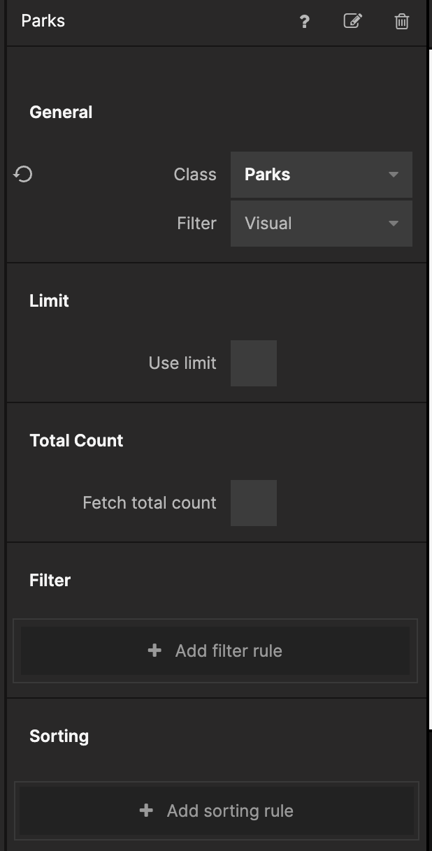 Now that we have a Table let's feed it with data from Parks class. Add a Query Records node to your node graph and tell it to look at the Parks class.