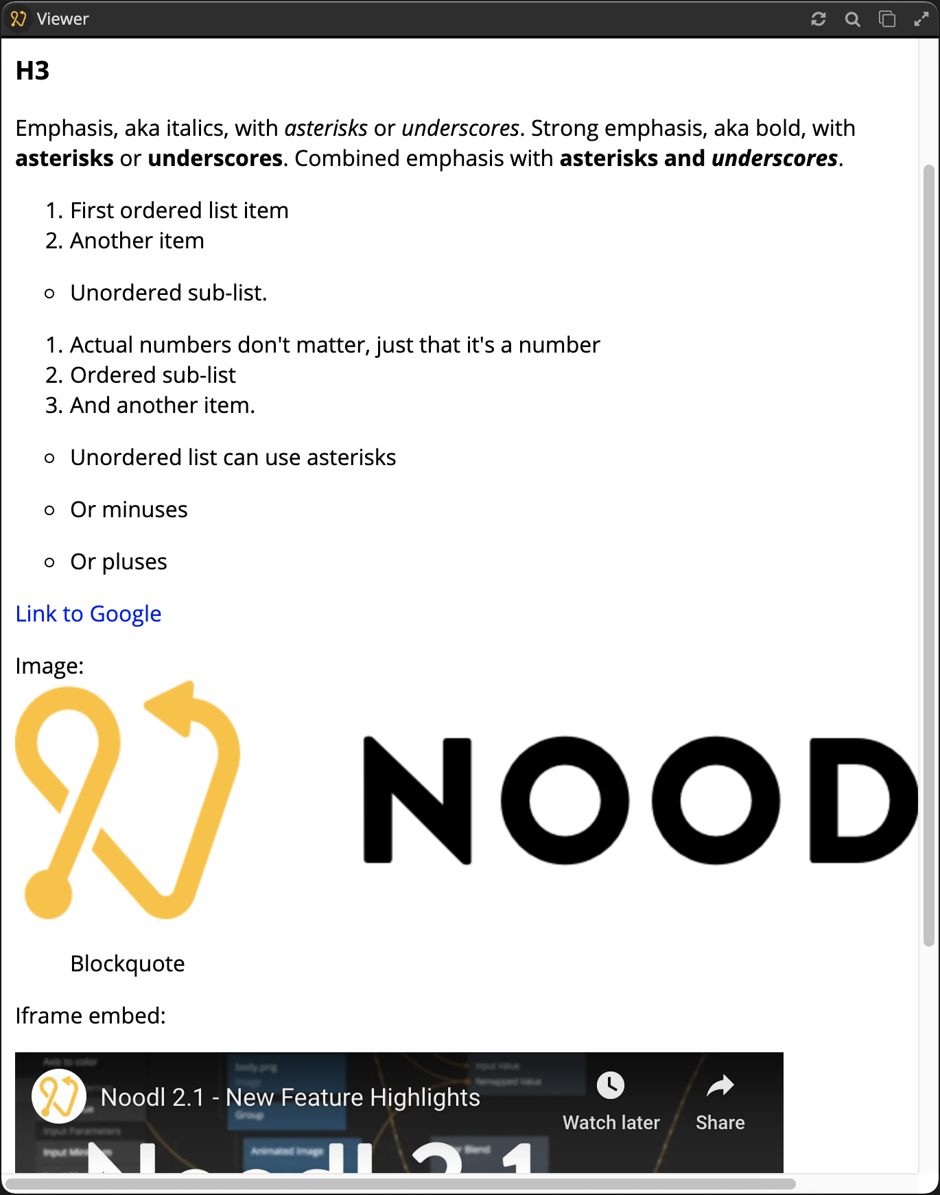 This module enables you to use Markdown in Noodl. It's implemented with react-markdown which in turn uses remark.