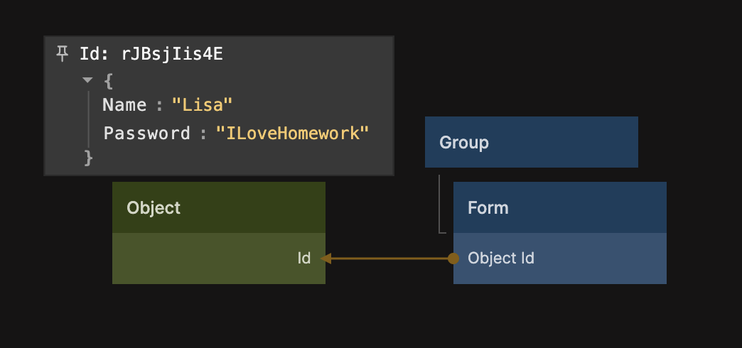 If you don't provide a value to the Object Id input an object will be created automatically to host the form values and you can use the output Object Id to retrieve it, as shown below. When you edit the Form the object will be populated with the values.