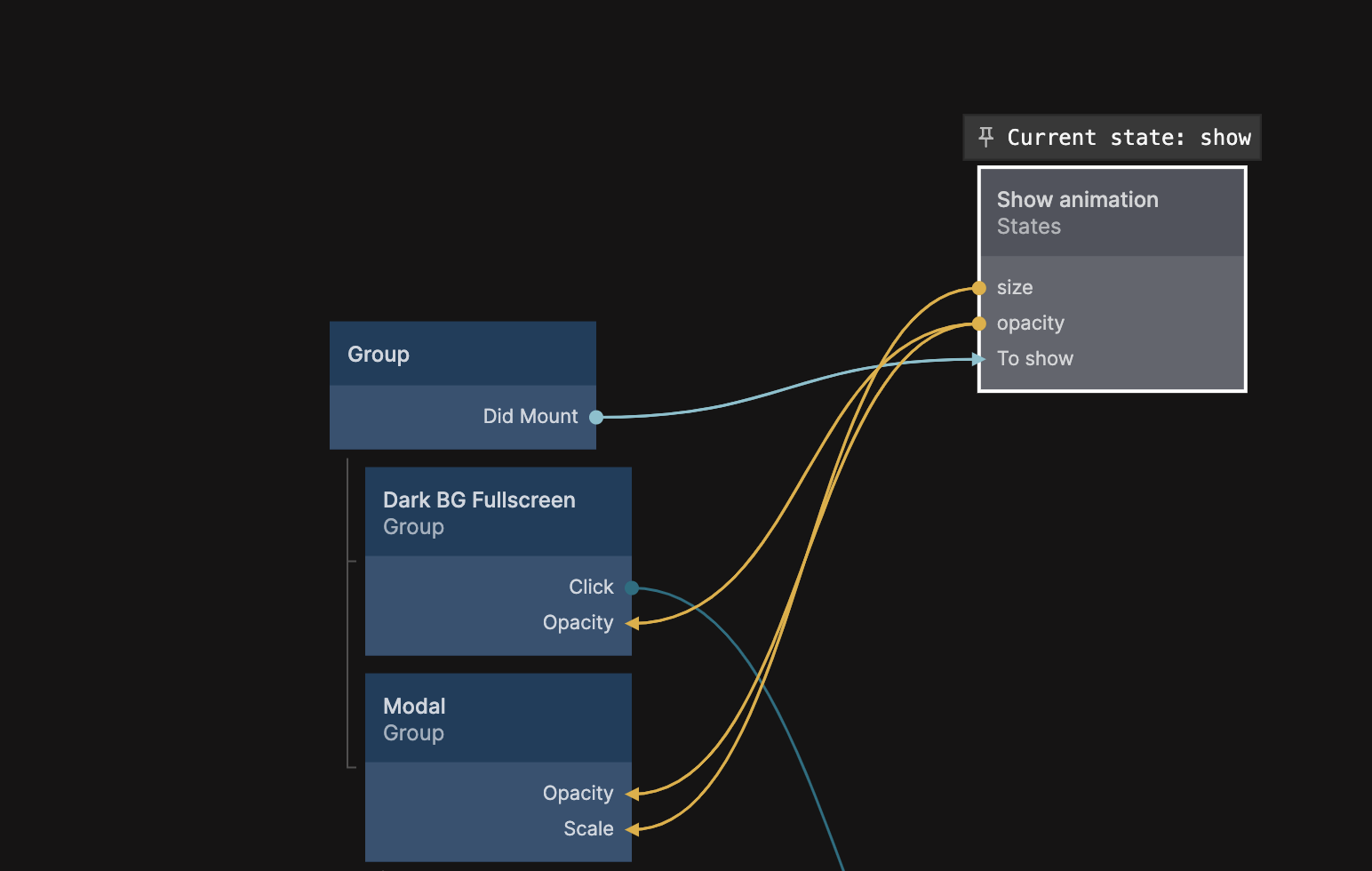 The State node is used to control the show and hide animation. You can read more about how to use State nodes in this guide.