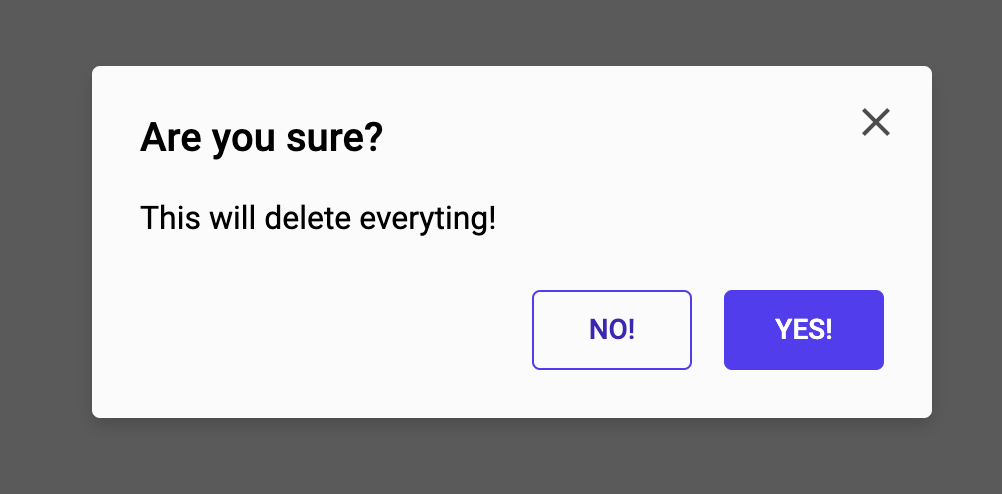 There are two Output signals that are emitted from the Popup Modal, one if the user clicked the confirm (primary) button and one if the user closed the popup or clicked the secondary button.