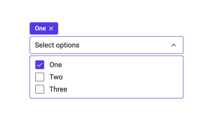 A simple component for multi choice selection comprising a drop down with all options and the selected options are shown as pills above the drop down.
