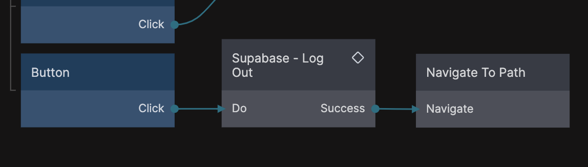 A successful log out will also trigger a Supabase User Logged Out event. You can hook into to this event anywhere in your app using a Receive Event node.