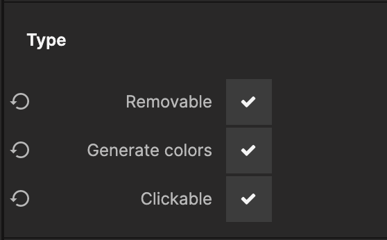 There are a couple of more options that is good to use. You can toggle if the the tags should be Removable (this will show a litte cross icon next to the label), and Clickable. By activating these you will also be able to receive the signals as shown later.