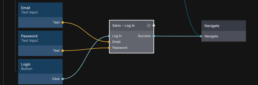 A successful signup will also trigger a Xano User Logged In event. You can hook into to this event anywhere in your app using a Receive Event node.