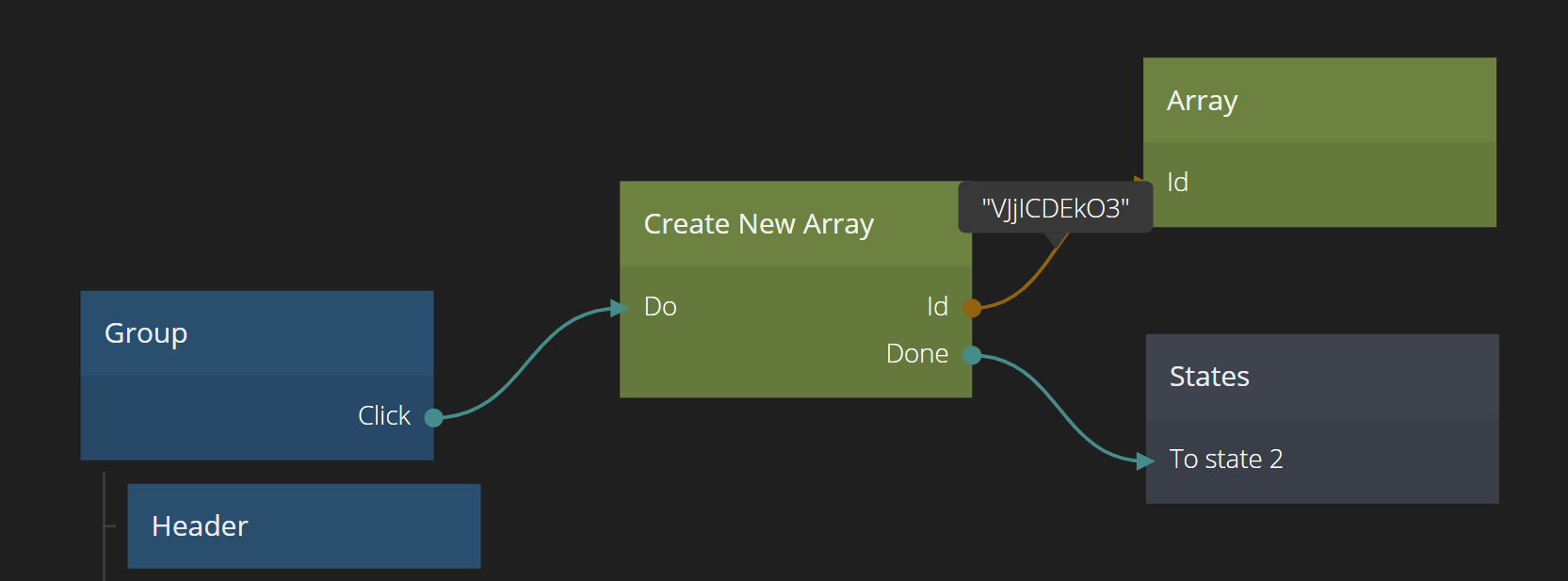 | Do | この入力にシグナルを送ると新しいArrayが作成されます。新しく作成された配列の_Id_が_Id_出力に設定されます。トリガーするたびに新しいArrayが作成され、_Id_出力が変更されます。 |