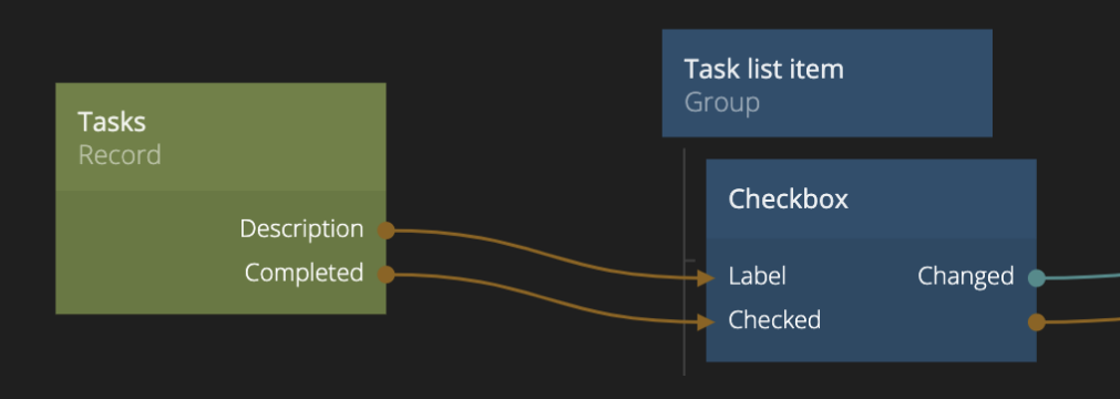 | Changed | A signal is sent on this output if the record that this node is reading data from has changed locally. |