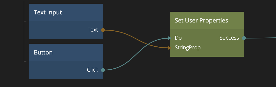 | Your custom properties | A property of the User class. You can add additional properties to the User class in the Noodl Cloud Services dashboard. These will show up as inputs on the Set User Properties node. |