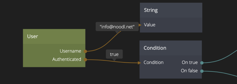 | Your custom properties | The value of extra properties of the User class specified in the Noodl Cloud Services. The node will contain the latest value of all user properties. |